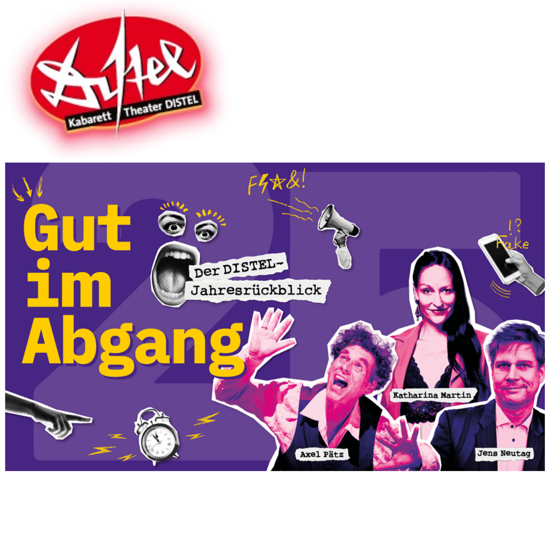 Ab November bin ich mit dem satirischen Jahresrückblick GUT IM ABGANG der Distel in Berlin auf Tournee.
